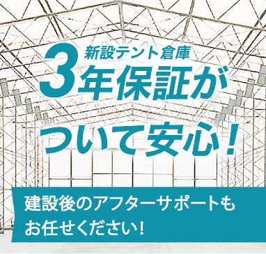 弊社にて建設させて頂いたテント倉庫は、3年間の保証がございます。