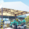 使用した上屋テントは側面がオープンな構造なので、雨をしのぎながらトラックの乗り入れ、