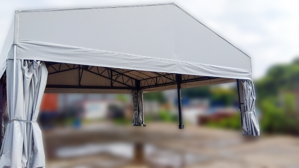上屋テントは側面がオープンな構造なので、雨をしのぎながらトラックの乗り入れ、積み下ろし、作業場にすることができます。