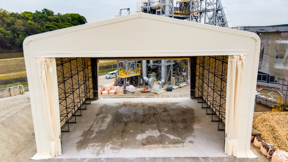 原料の一時保管目的としてテント倉庫をお選びいただきました。